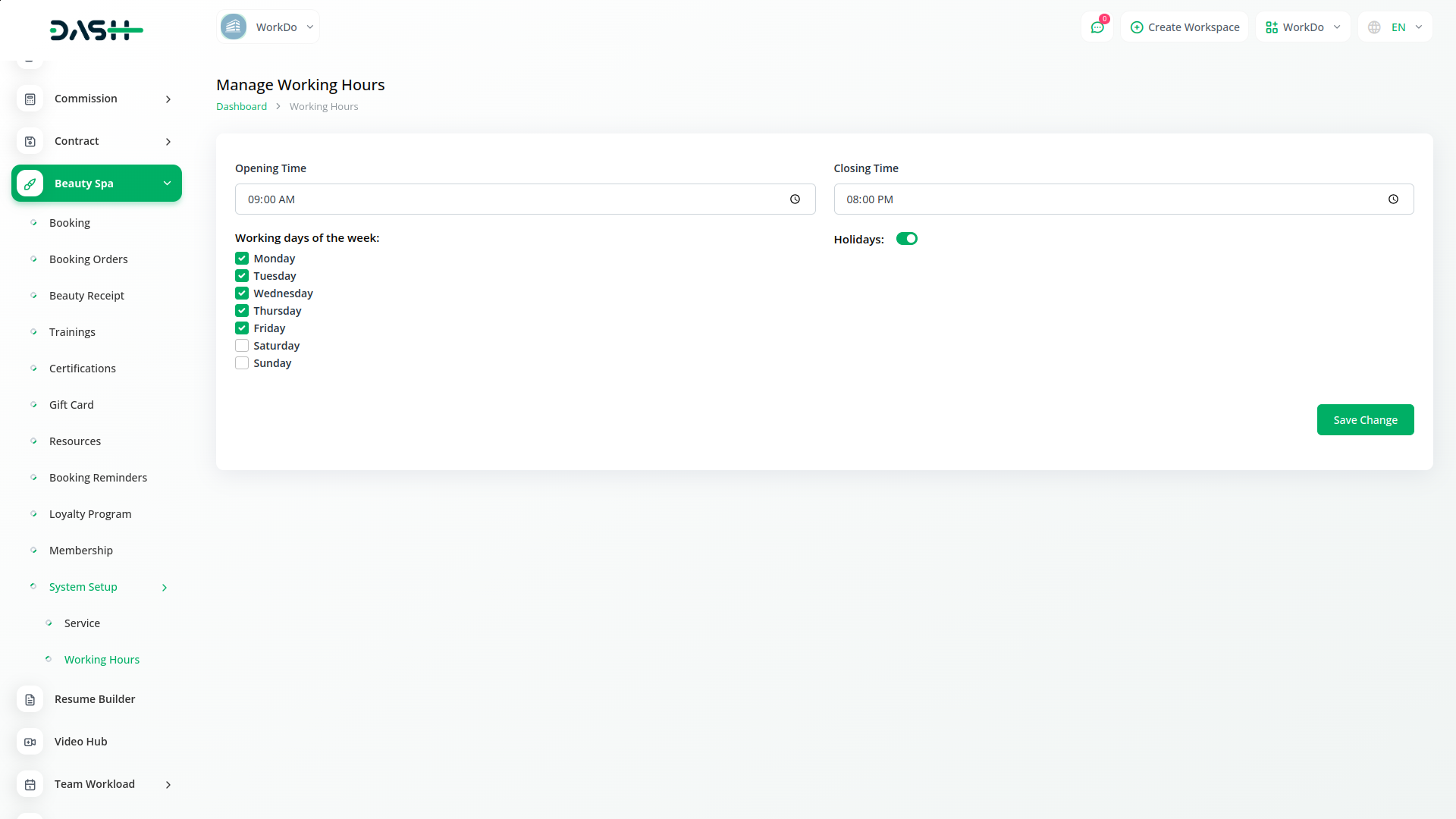 The backend management tools in Dash SaaS empower salon owners to take control of their schedule. Managing unforeseen circumstances such as holidays or unexpected closures is made easy with the ability to cancel slots. This ensures that the salon calendar remains well-organized, preventing any scheduling conflicts and maintaining a smooth operation.